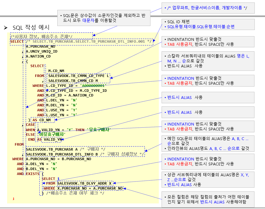 SQL작성 규칙을 지키면 후에 다른 사람이 유지보수하기에도 매우 좋다.