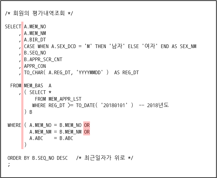 일단 사용되고 있는 쿼리의 FROM절에 써져있는 테이블들을 미리미리 봐놓자.