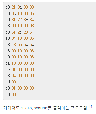 컴퓨터가 탄생한 초창기에는 기계어(Machine Code)로 프로그래밍을 했다고 한다.