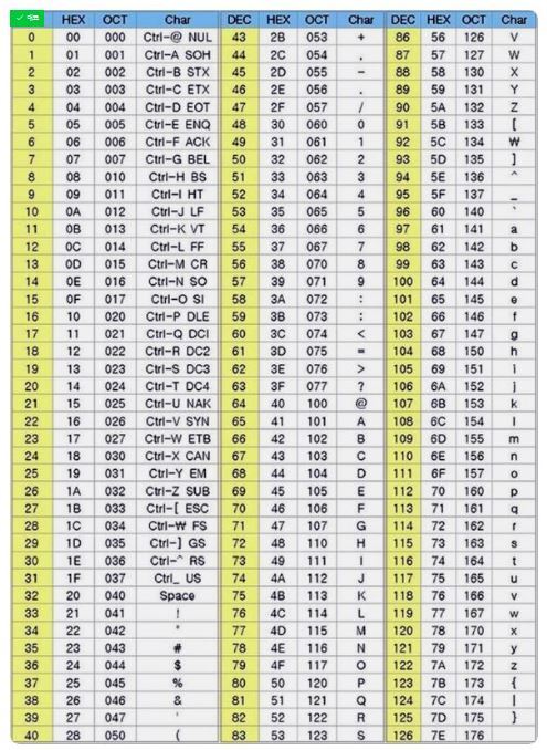 아스키 코드 표를 보자