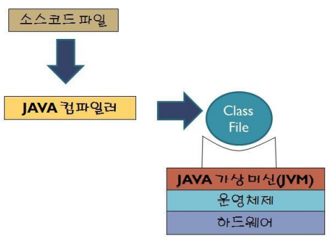 - 자바 프로그램은 JVM이 설치된 환경이라면 운영체제나 하드웨어에 종속되지 않고 실행 가능