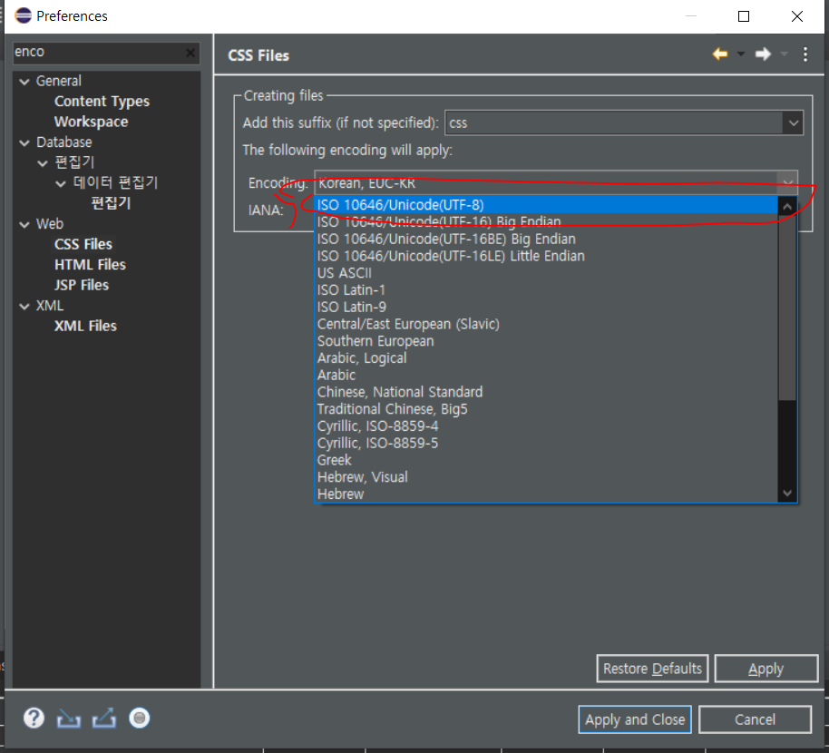 이 글로벌 시대에 다른 언어도 문제없이 쓰고 싶다면 UTF-8로 변경해주는 것이 좋다.