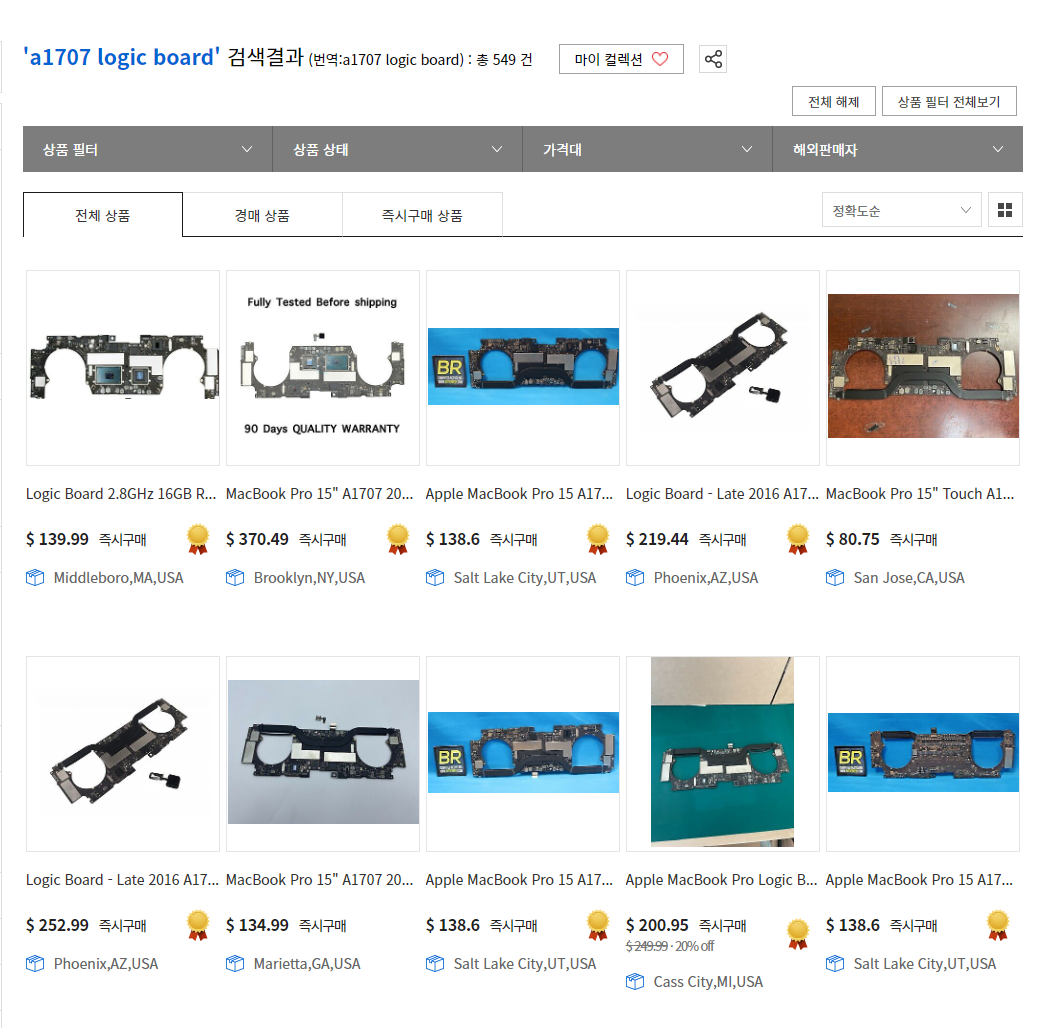 한창을 찾아보던 중 이베이에서 약 130~150달러 사이에 로직보드를 팔고 있는 것을 발견했다.